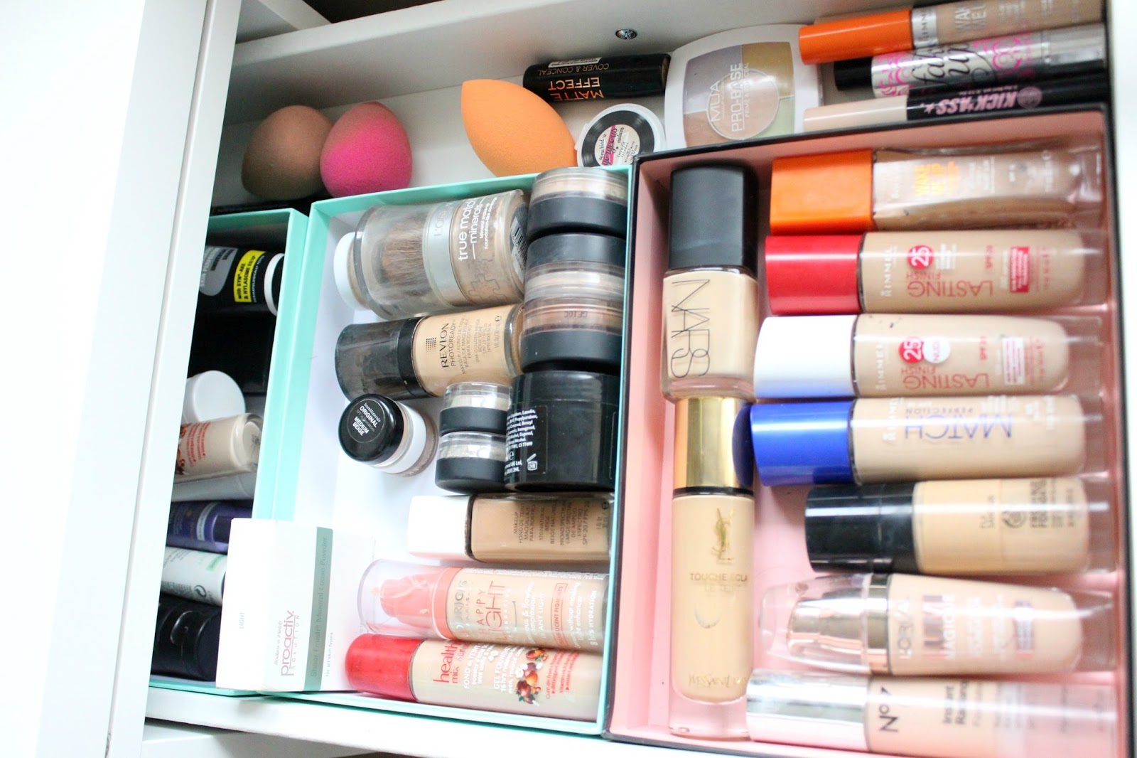 What a bargain!!! Overall I'm so pleased with it, I feel so much more organised and have my makeup organised into different sections. I thought I'd show that aswell today, even though I'm not entirely happy with the compartments yet. Eventually I'd like to get some Muji storage or something similar, but for now I've tried to section things off with boxes. Yes it's messy but it'll get there eventually.